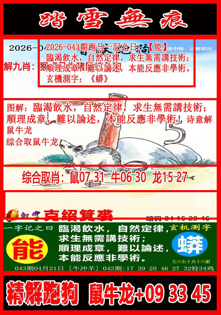 043期:【曾道人叫兽】<解析跑狗>玩一年六合不如玩本期!