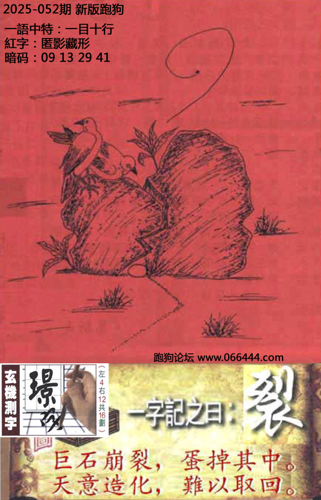 052期六合皇信箱红字【匿影藏形】《暗码:09 13 29 41》开32狗