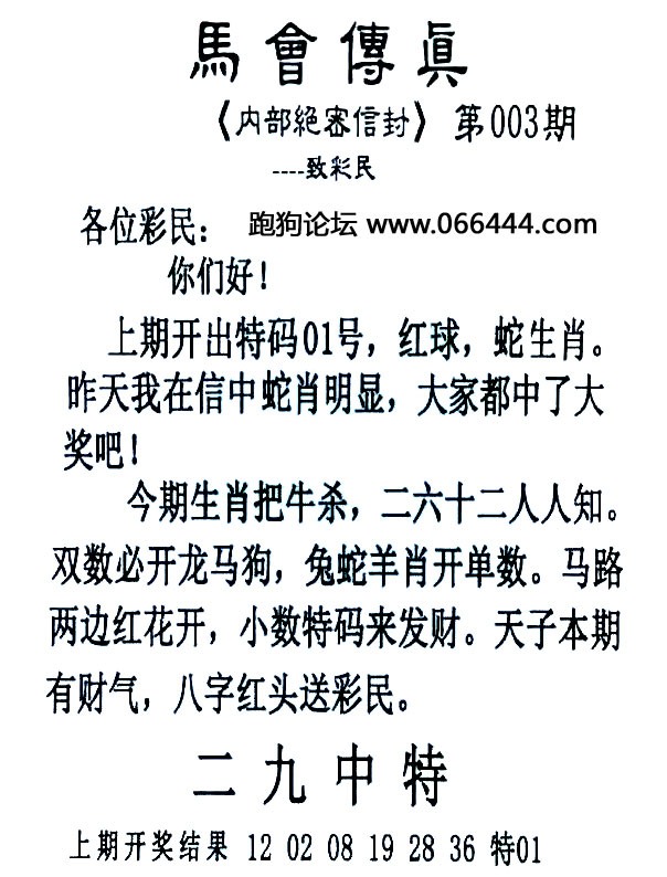003期:香港跑狗论坛原創-【精准3头中特】→资料已公開 跑狗出版社