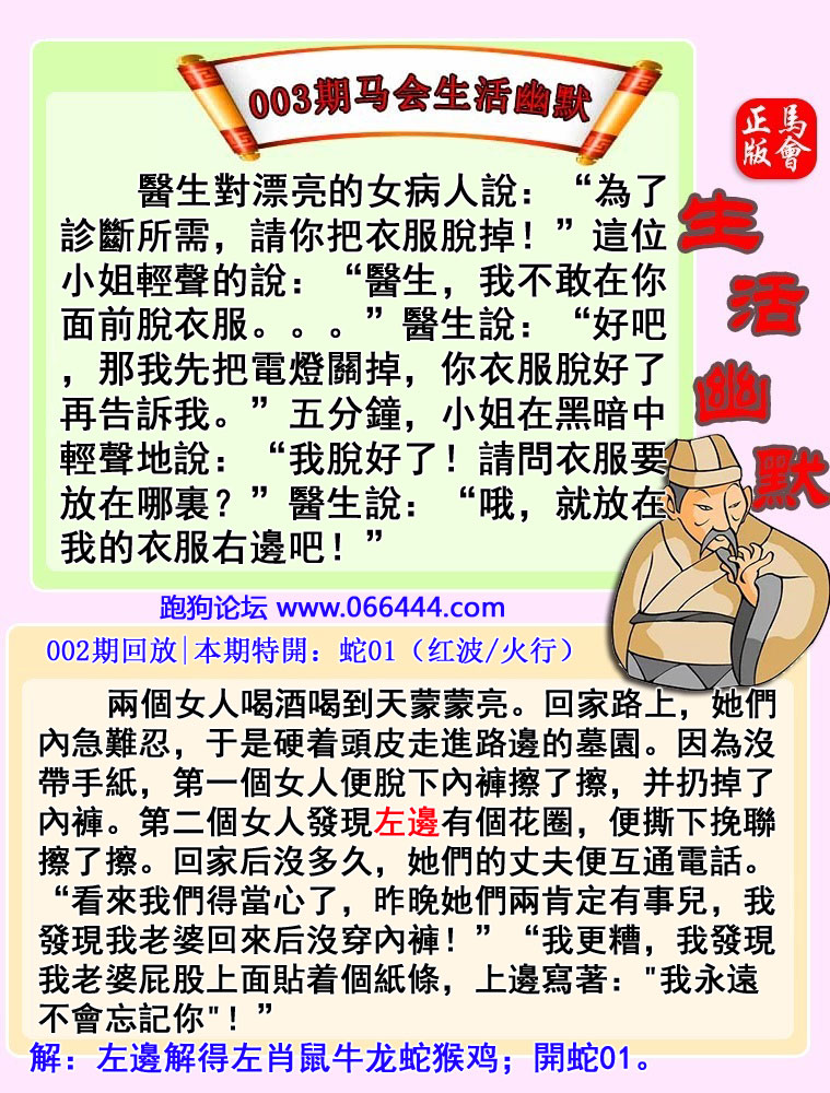 003期:【今日闲情】【蛇蛋图】【福利传真】【馬會傳眞】 跑狗出版社 『跑狗论坛:www.444024.Com