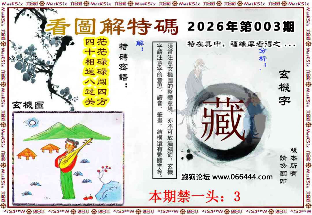 003期:跑狗玄機/密圖詩/粤彩三语/特碼歇后语/正另版梅花诗 跑狗出版社