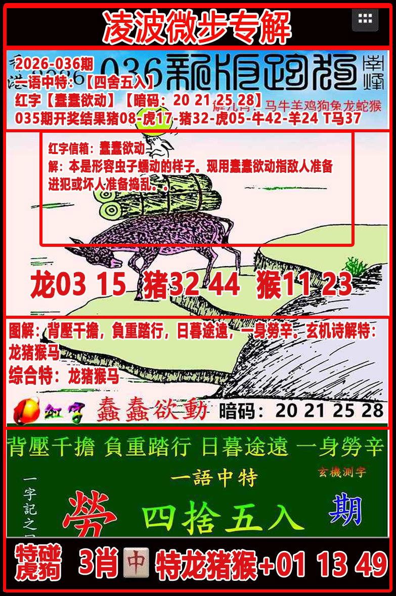 解析:背壓千擔,負重踏行。解狗猴虎龙马鼠羊