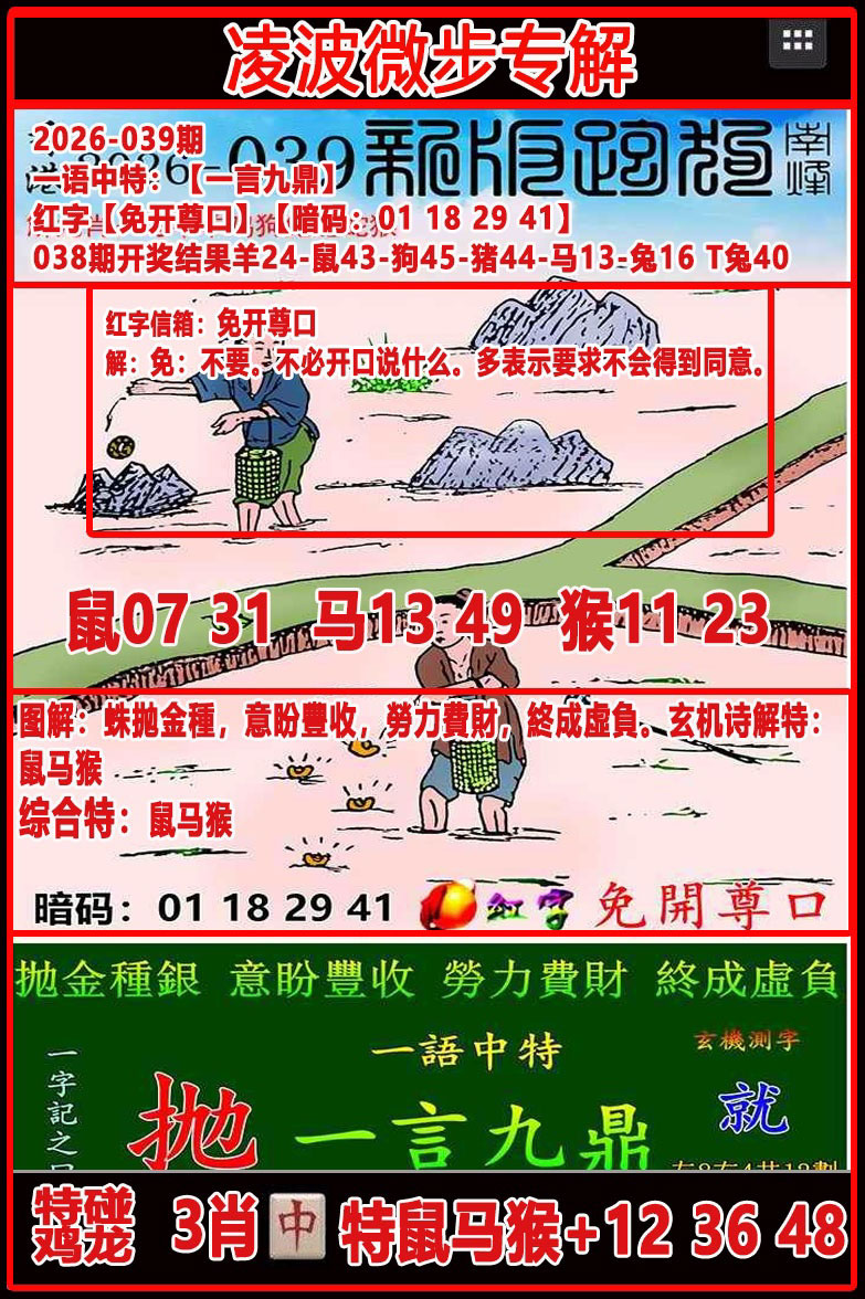 038期:【一锤定音】━━━【解析跑狗玄机】━━━个人心水分析!