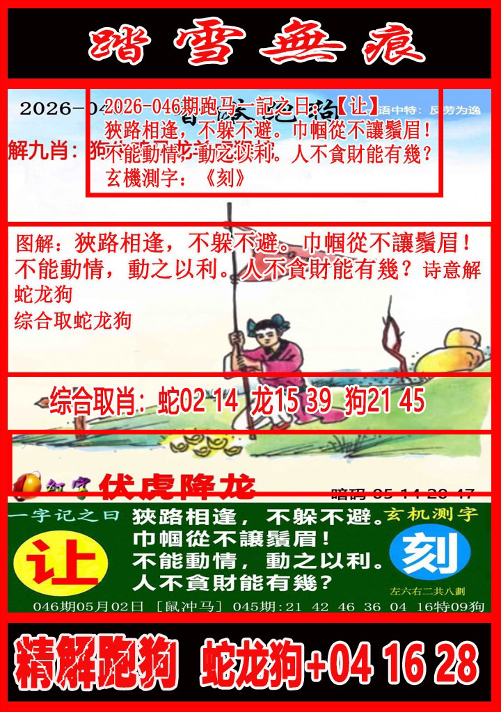 046期:【通天大道】━━━【解析跑狗玄机】━━━个人心水分析!