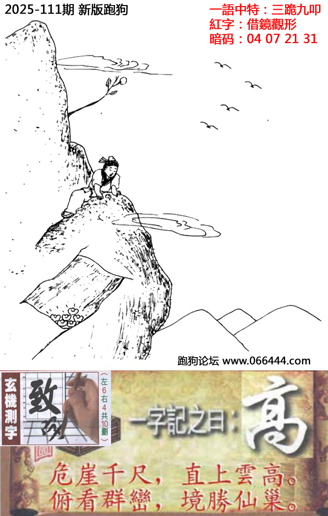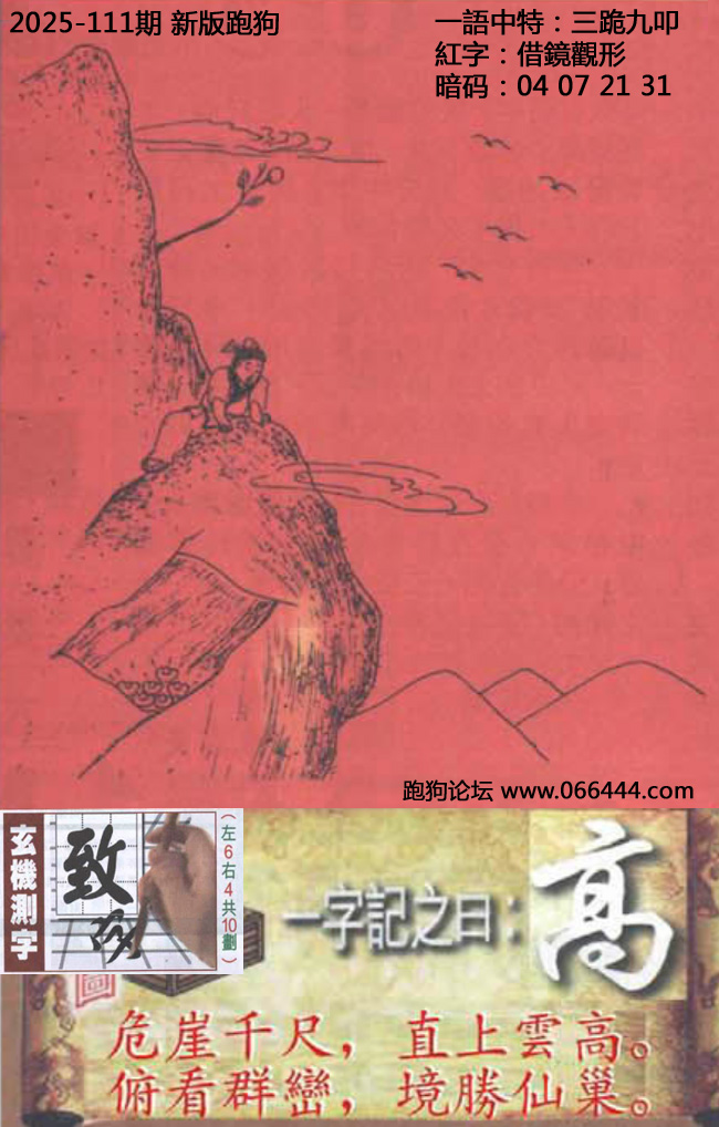 111期六合皇信箱红字【借鏡觀形】《暗码:04 07 21 31》开